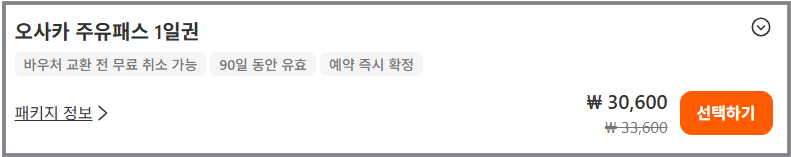 오사카 3일차 여행은 더 걸을 수도 있는 오사카 주유패스 1일권을 구매해서 사용하기로 했다.